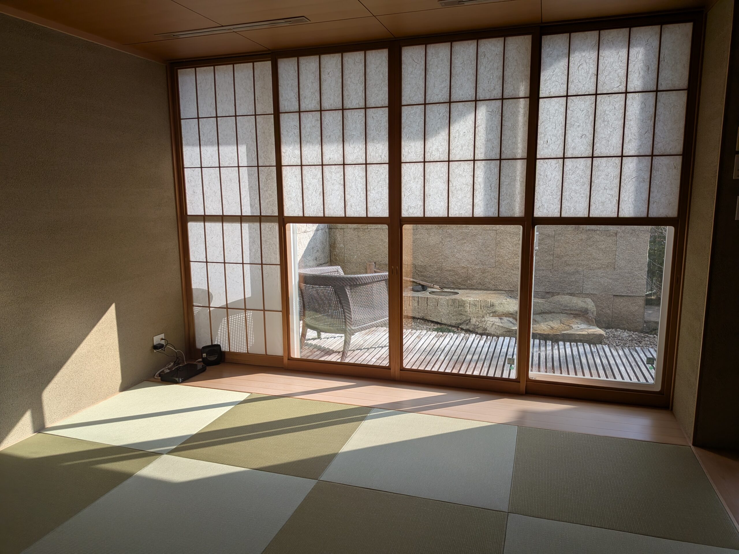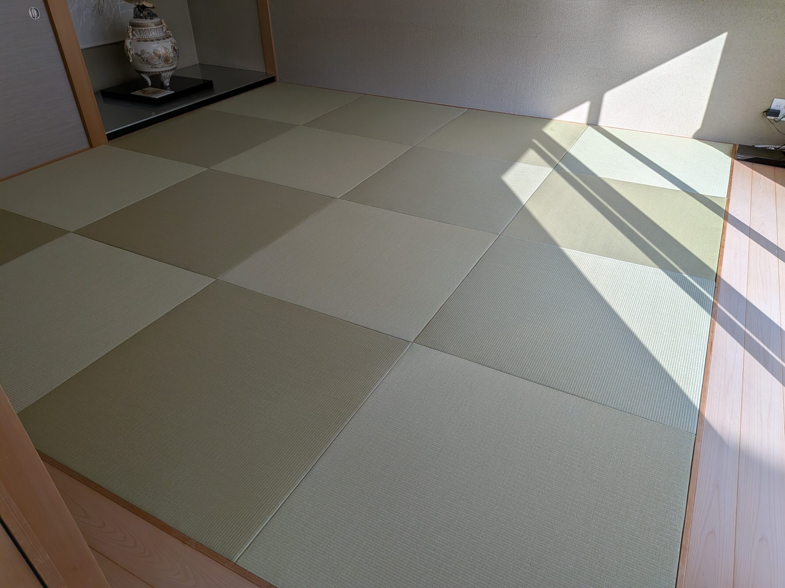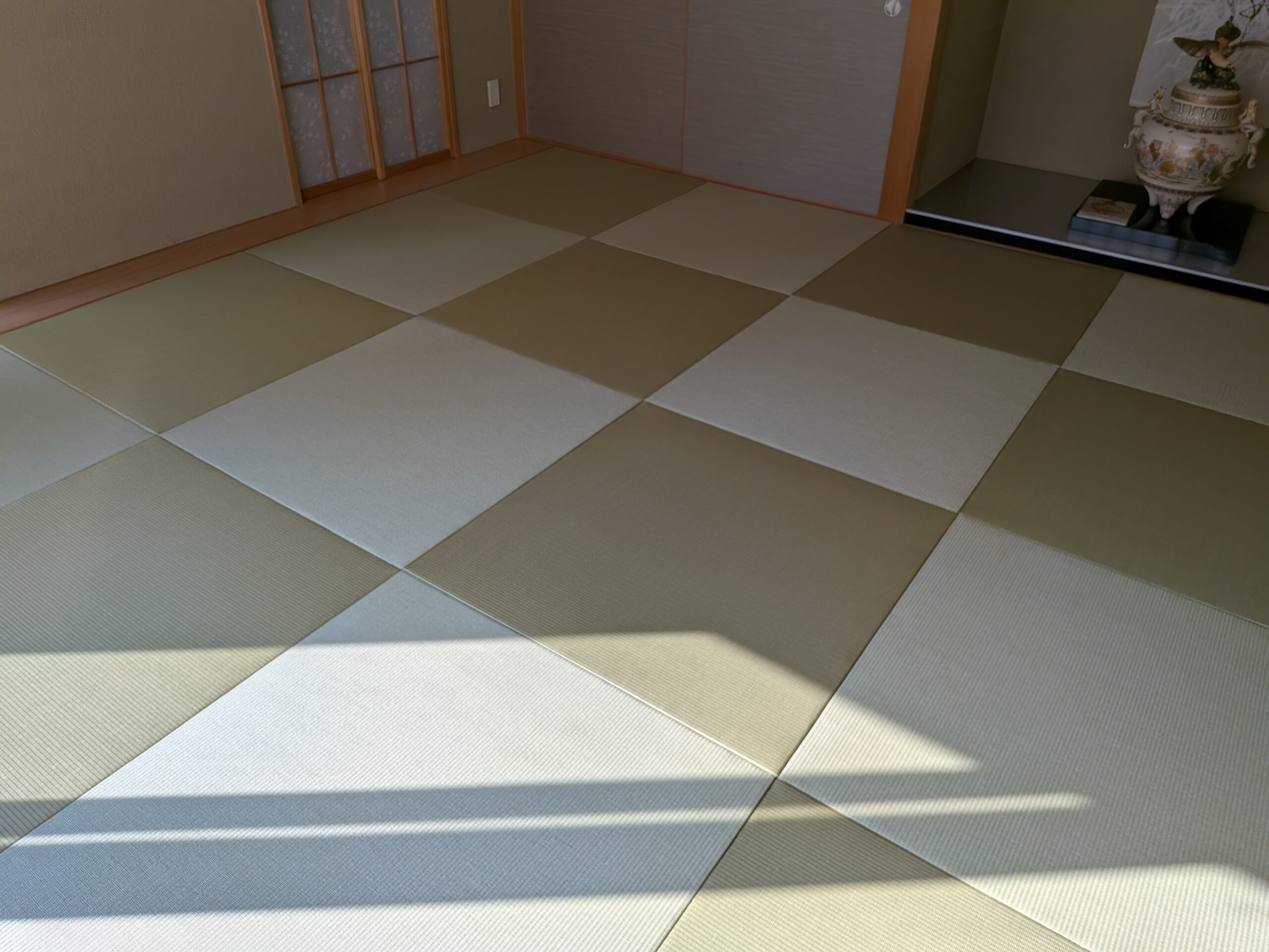 施工事例 和室リフォーム 琉球畳と和紙の障子で、モダンな和室に After 施工箇所畳・障子施工内容畳表替え16畳・障子張り替え4本 工期お預かりから5日間費用330,000円(税込) 新築から一度も張り替えたことがない和室でした。畳は元々、琉球畳でしたが日焼けでささくれていました。障子はパルプ紙が張ってありましたが、茶色くなってしまっている状態。ご相談させていただき、畳は和紙畳、障子は楮100%の和紙にて施工しました。
